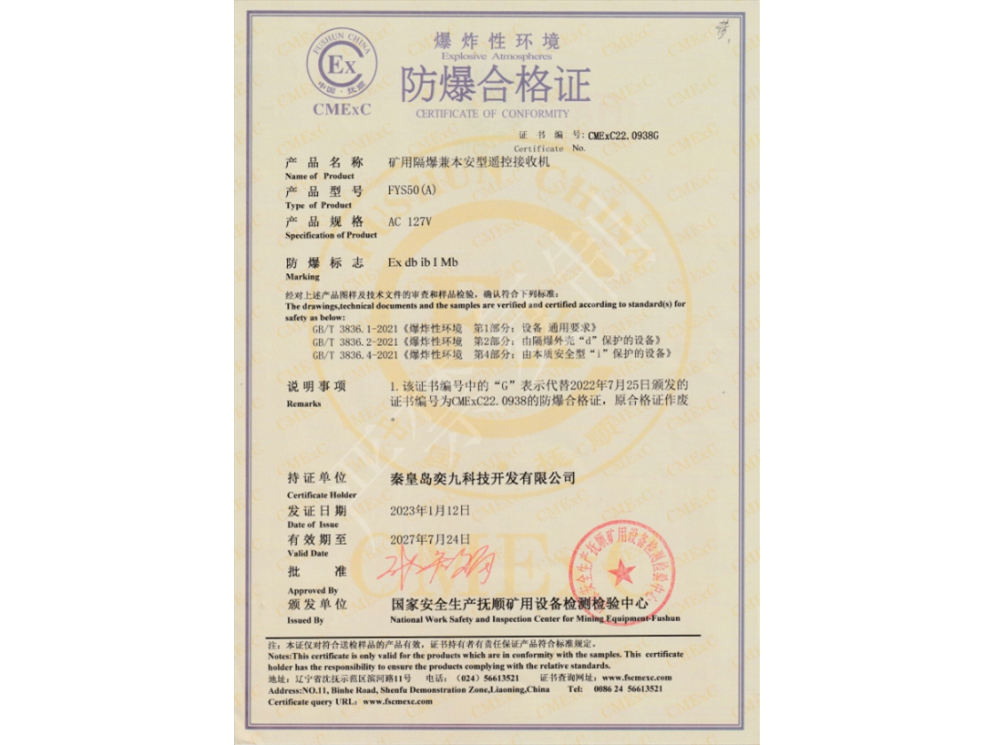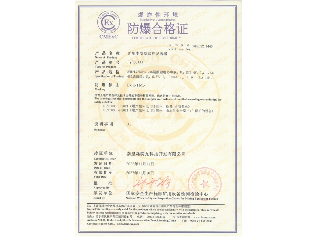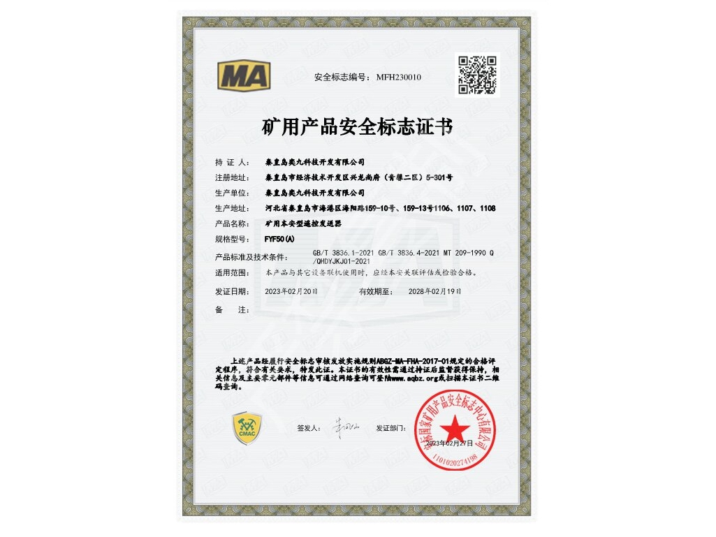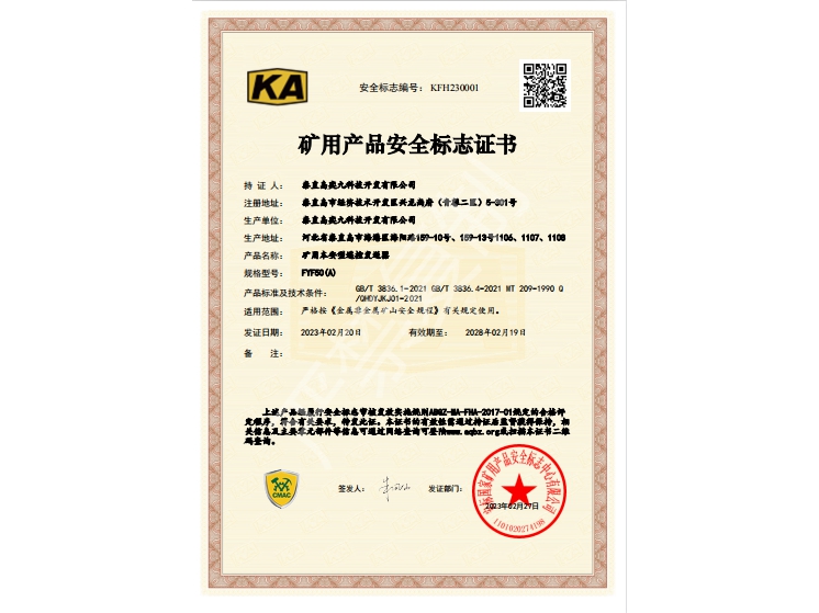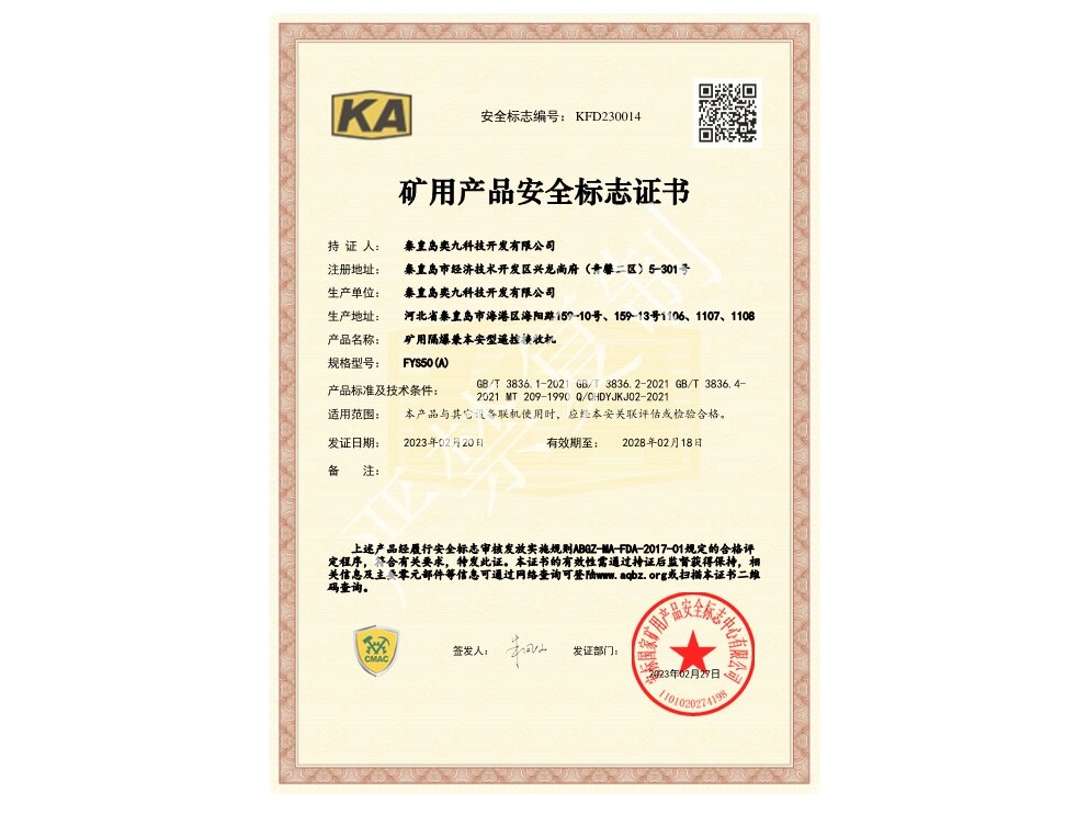 礦用產(chǎn)品安全標志證書
