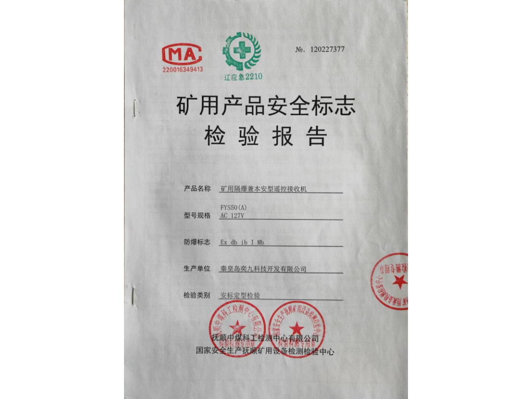 礦用產(chǎn)品安全標志檢驗報告