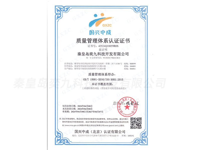 質(zhì)量管理體系證書